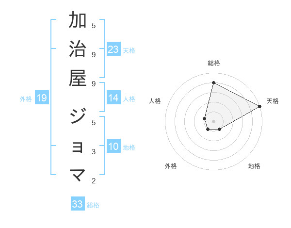 加治屋 ジョマさんの天格は23画の5点