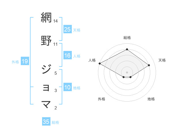 網野 ジョマさんを姓名の画数から五運を鑑定