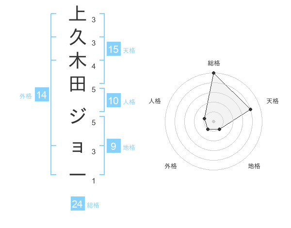 上久木田 ジョーさんを姓名の画数から五運を鑑定