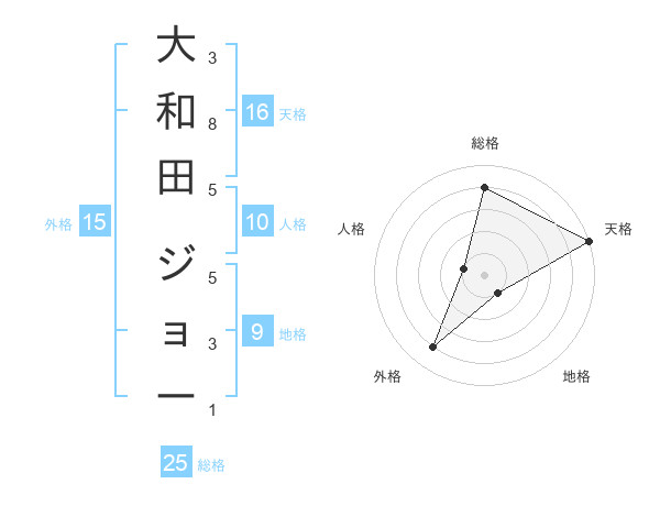 大和田 ジョーさんを姓名の画数から五運を鑑定