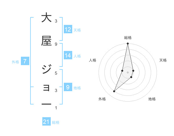 大屋 ジョーさんを姓名の画数から五運を鑑定