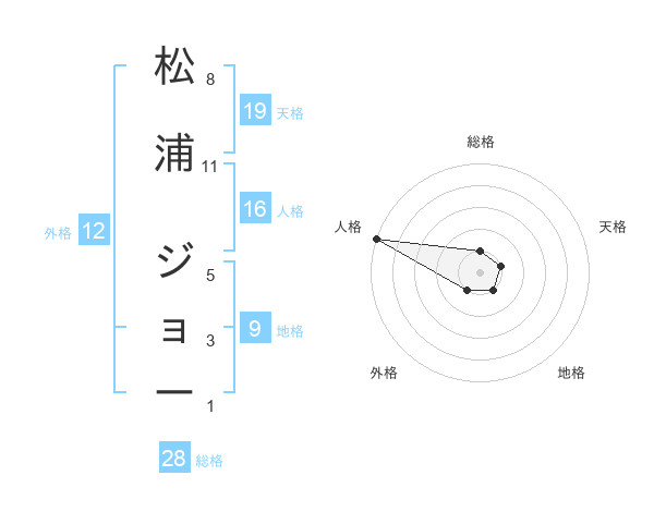 松浦 ジョーさんを姓名の画数から五運を鑑定