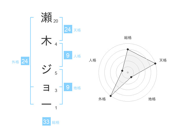 瀬木 ジョーさんを姓名の画数から五運を鑑定