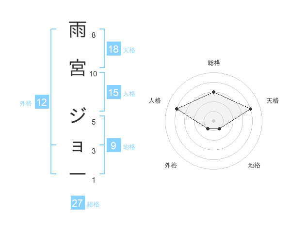雨宮 ジョーさんを姓名の画数から五運を鑑定