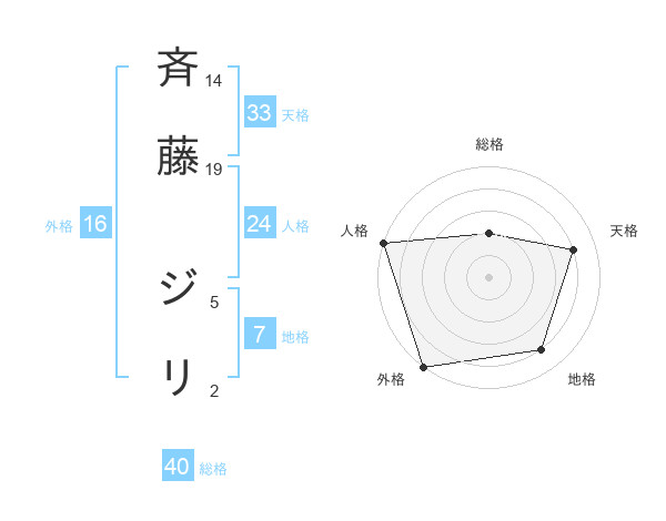 斉藤 ジリさんを姓名の画数から五運を鑑定