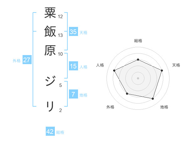 粟飯原 ジリさんを姓名の画数から五運を鑑定