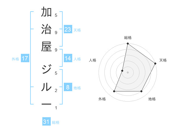 加治屋 ジルーさんの天格は23画の5点