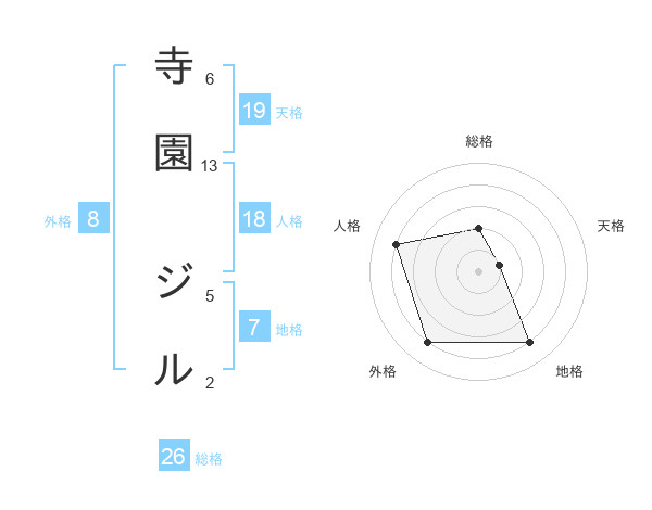 寺園 ジルさんの天格は19画の1点!