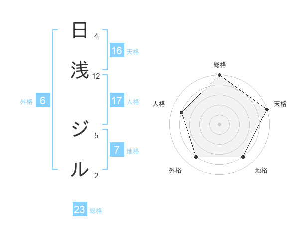 日浅 ジルさんの天格は16画の5点!