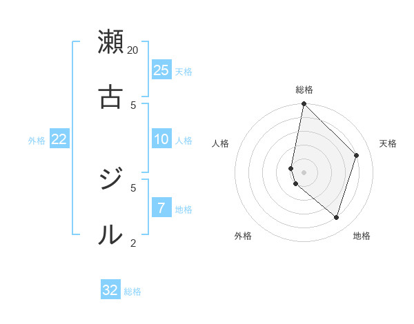 瀬古 ジルさんを姓名の画数から五運を鑑定