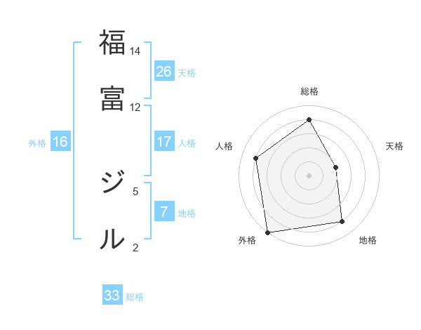 福富 ジルさんの総格は33画の4点!