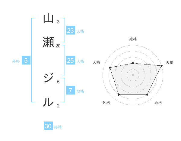 山瀬 ジルさんの天格は23画の5点!