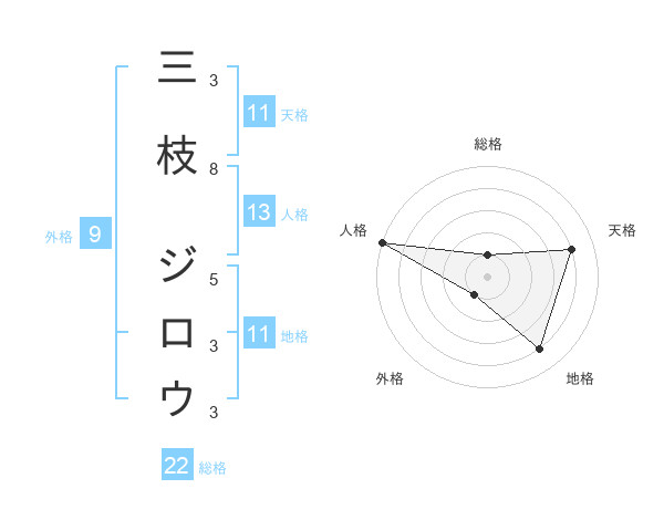 三枝 ジロウさんの天格は11画の4点!