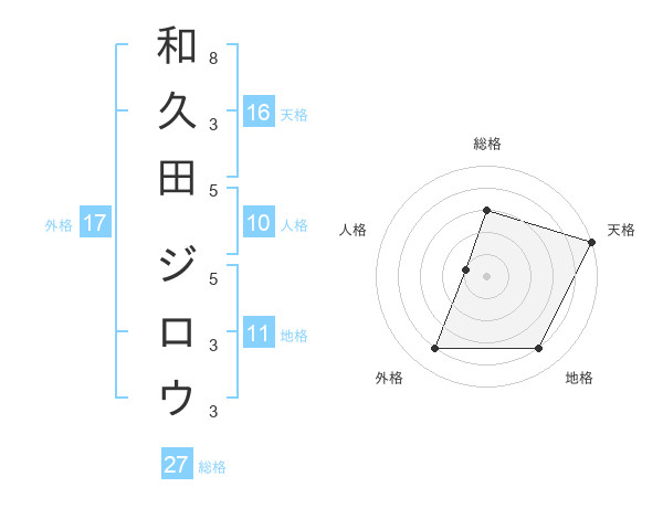 和久田 ジロウさんを姓名の画数から五運を鑑定