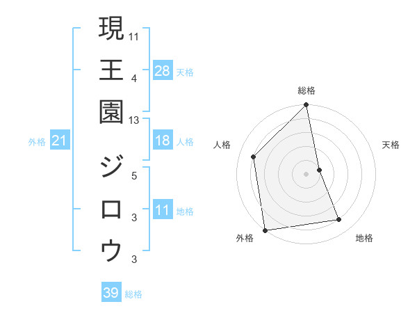 現王園 ジロウさんを姓名の画数から五運を鑑定