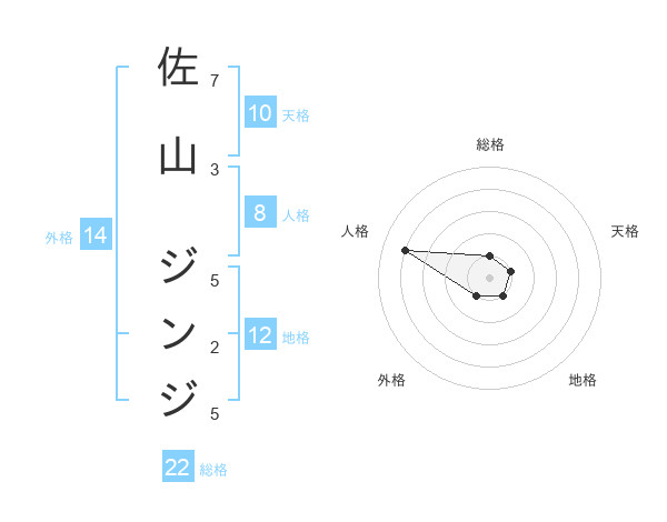 佐山 ジンジさんを姓名の画数から五運を鑑定