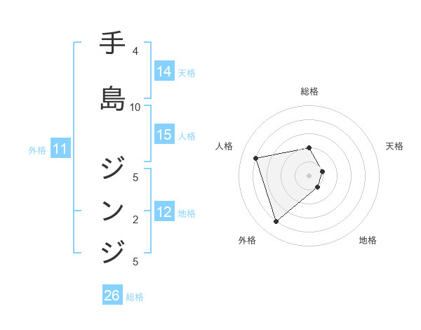 手島 ジンジさんを姓名の画数から五運を鑑定