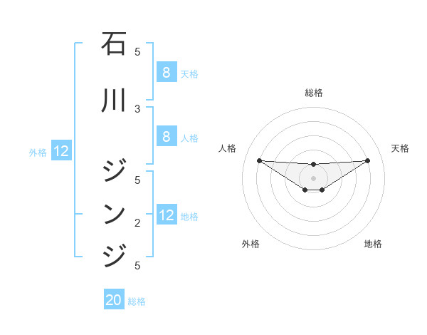 石川 ジンジさんを姓名の画数から五運を鑑定