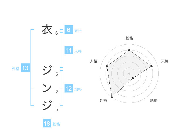 衣 ジンジさんを姓名の画数から五運を鑑定