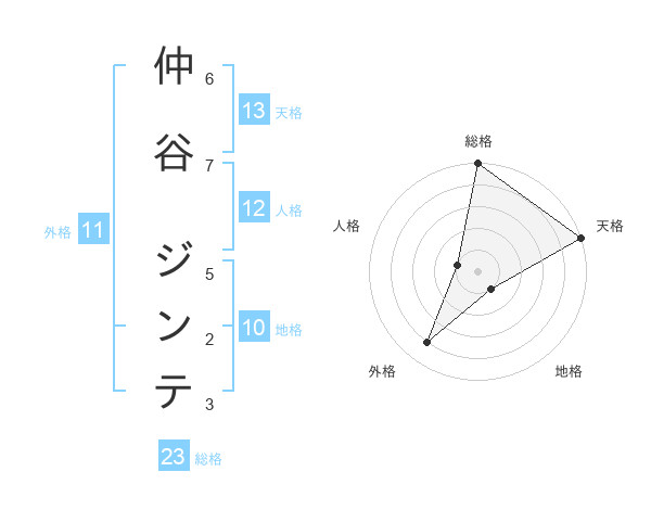 仲谷 ジンテさんの天格は13画の5点!