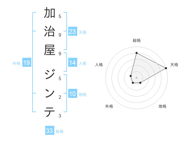加治屋 ジンテさんの天格は23画の5点