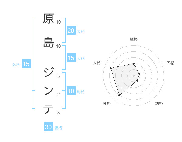 原島 ジンテさんを姓名の画数から五運を鑑定