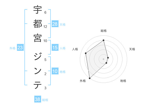 宇都宮 ジンテさんを姓名の画数から五運を鑑定