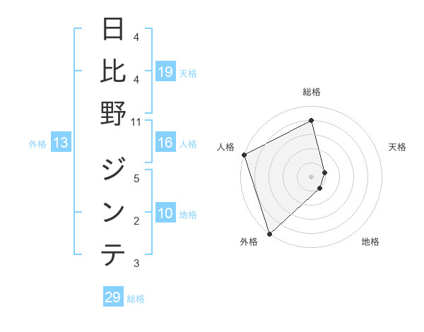 日比野 ジンテさんの総格は29画の4点!