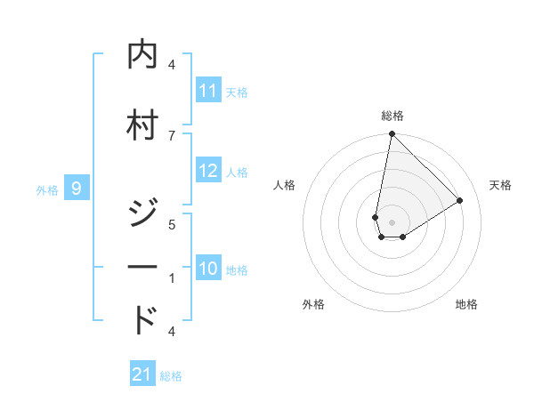 内村 ジードさんの総格は21画の5点!
