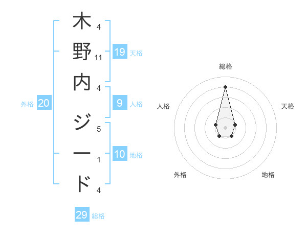 木野内 ジードさんを姓名の画数から五運を鑑定