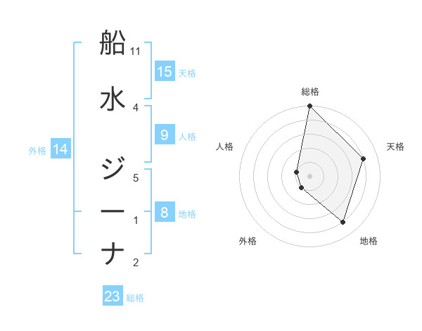 船水 ジーナさんの天格は15画の4点!