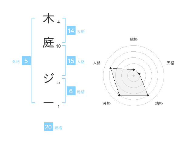 木庭 ジーさんの総格は20画の1点!