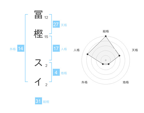冨樫 スイさんの総格は31画の5点!