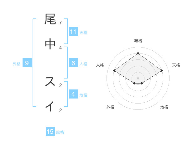 尾中 スイさんの総格は15画の4点!