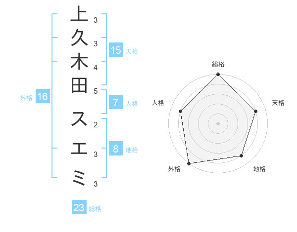 上久木田 スエミさんを姓名の画数から五運を鑑定