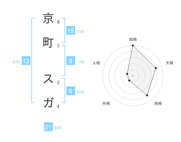 京町 スガさんの総格は21画の5点!