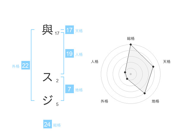 與 スジさんの天格は17画の4点!