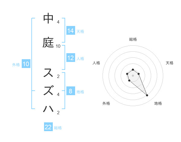 中庭 スズハさんの総格は22画の1点!