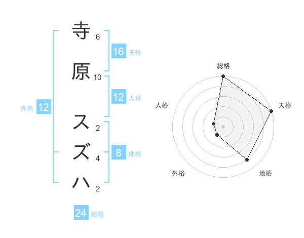 寺原 スズハさんの天格は16画の5点!