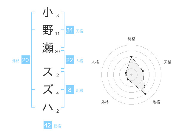 小野瀬 スズハさんを姓名の画数から五運を鑑定