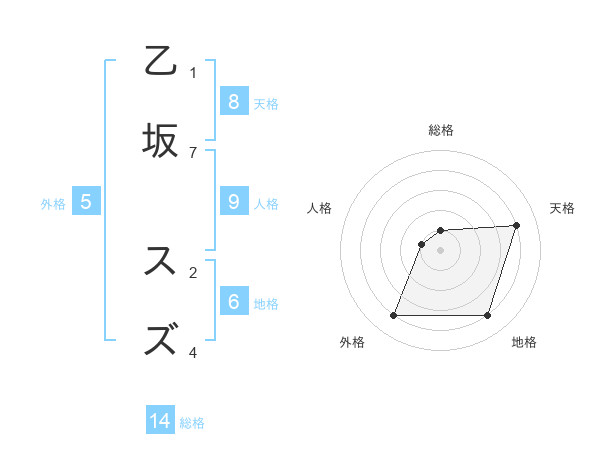 乙坂 スズさんを姓名の画数から五運を鑑定