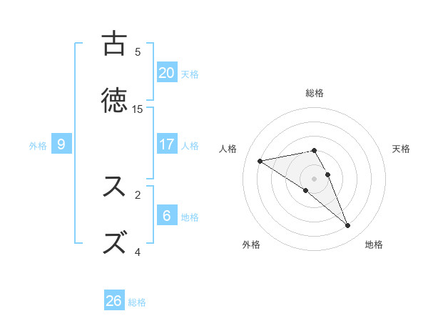 古徳 スズさんの総格は26画の2点!