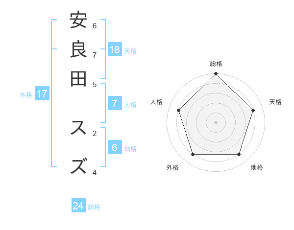 安良田 スズさんの総格は24画の5点!