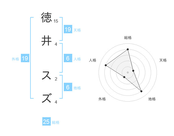 徳井 スズさんの総格は25画の4点!