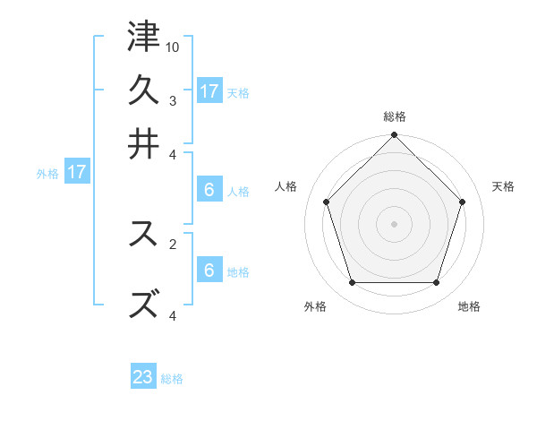 津久井 スズさんの総格は23画の5点!