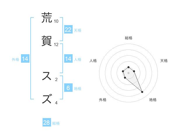 荒賀 スズさんを姓名の画数から五運を鑑定