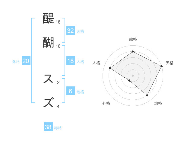 醍醐 スズさんを姓名の画数から五運を鑑定
