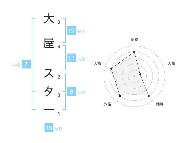 大屋 スターさんの天格は12画の1点!