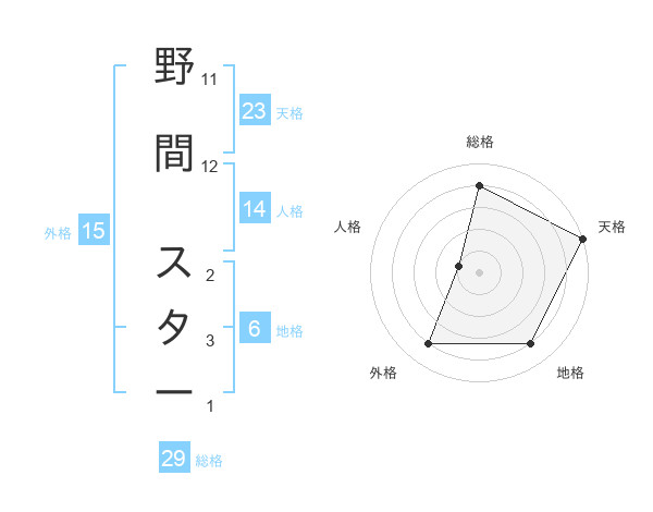野間 スターさんの天格は23画の5点!