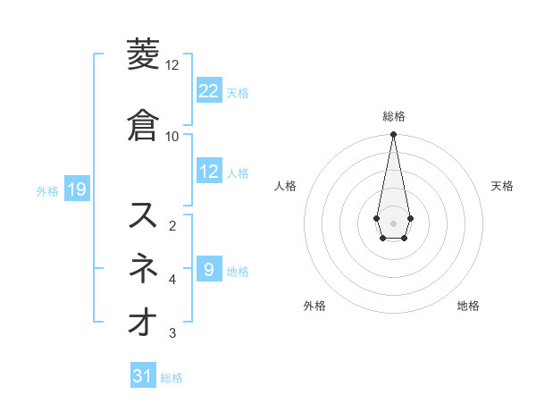 菱倉 スネオさんの総格は31画の5点!